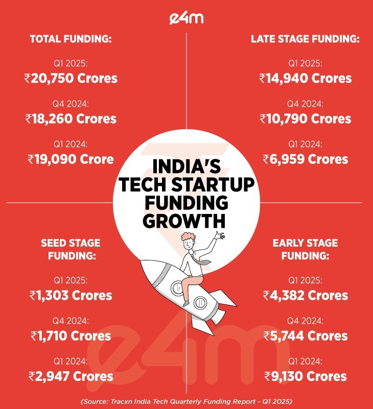 - Data confirms this: in the first half of 2025, Indian startups raised about US$4.95 billion across ~410 deals, a modest 9 % year‑on‑year increase — but still well below the peaks of 2021/22.